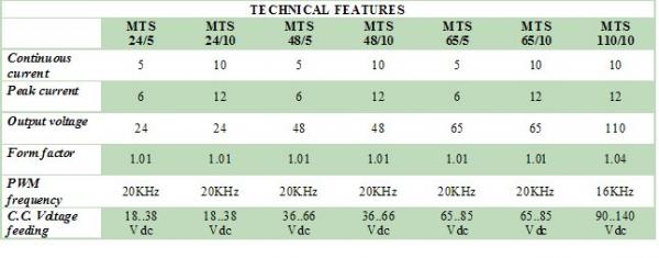 MTS DRIVE. MTS in a converter AC/DC realized to control D.C. motors. Costructed on singol EUROCARD 100x160 mm in PWM technology con power transistors, endowed with alluminium support for fastening on wall.